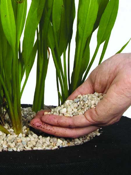 Das Kies wird für das Abdecken von Teicherde in Pflanzkörben verwendet, ist aber auch gut geeignet als Abdeckmaterial für Sumpf- und Teichböden. So ein mit Kies abgedeckter Boden gibt prächtig die Konturen des Teichs wieder und eine klare Sicht auf die Fische.