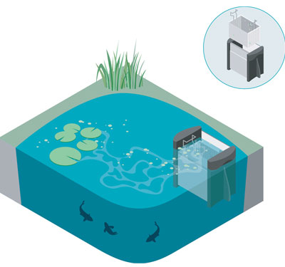 Blätter, Äste oder sonstige Verschmutzungen führen dazu, dass sich Teichwasser mit zu vielen Nährstoffen von außen anreichert und somit veralgt und trübe wird. Skimmer sind Vorrichtungen, die in künstlich angelegten Gartenteichen oder Schwimmteichen diesem Prozess vorbeugen und es erst gar nicht zulassen, dass die Oberflächenverunreinigung das Wasser eintrübt. Sie saugen den Schmutz von der Wasseroberfläche ab.